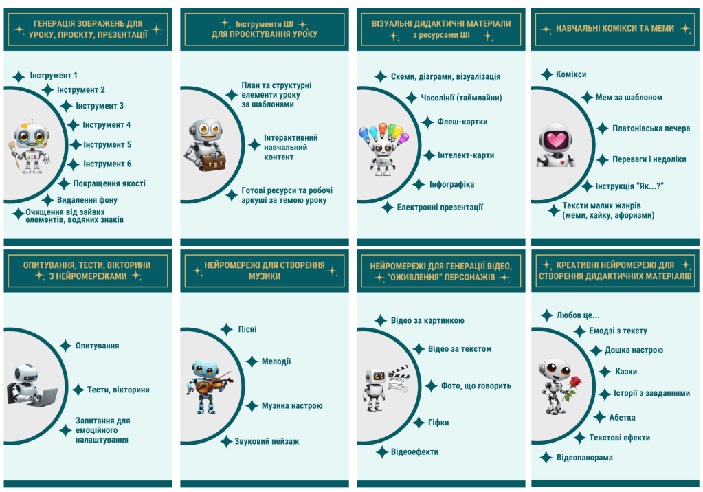 2) інструментальний блок – опис 50 нейромереж для вчителя та учнів з актуальними оновленнями на січень 2025 року, сторінки з активними покликаннями;