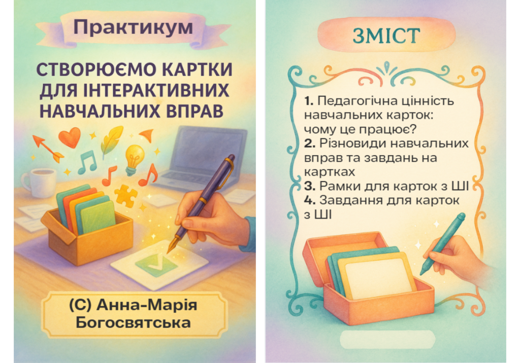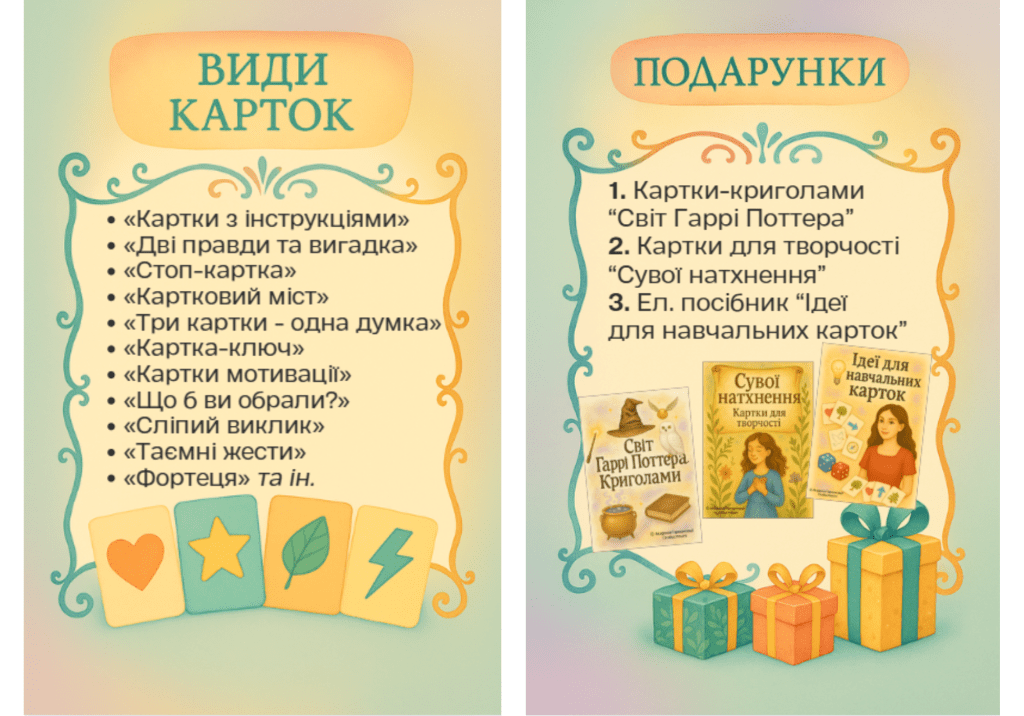 Як легко й цікаво створювати навчальні картки, що оживляють уроки, мотивують учнів і допомагають реалізувати вашу педагогічну творчість. Види навчальних карток, досвід використання, ідеї та, звичайно, інструменти ШІ для полегшення розробки власних наборів карт.