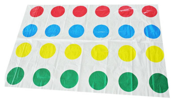 У популярної гри «Твістер» є поле, що складається з 4-х кольорових доріжок.