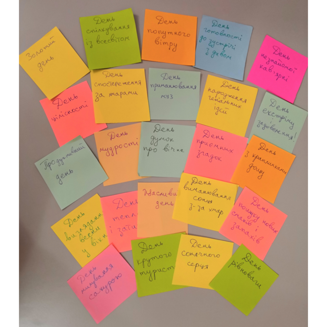 Для втілення ідеї тематичного дня спочатку хотіла використовувати рамку для фотографій, куди можна було б кожен день вставляти новий аркуш з написом мого «свята». Але мріялось про щось більш просте, яке б не займало багато часу.