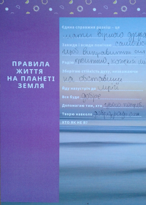 Для вирішення цього питання учням потрібно було заповнити картку «Послання Маленького принца до мешканців планети Земля».