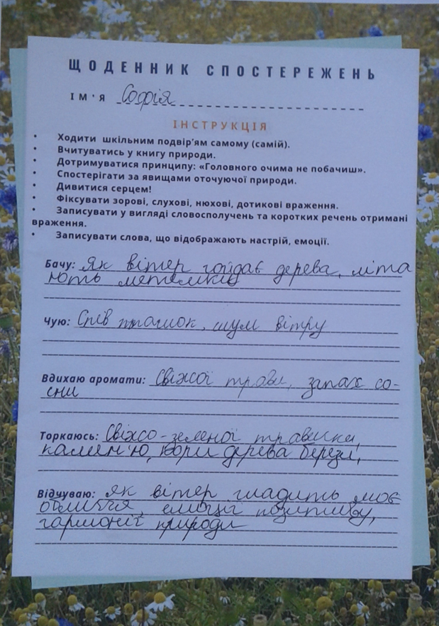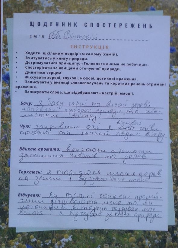 Ось кілька заповнених учнівських «Щоденників спостережень».