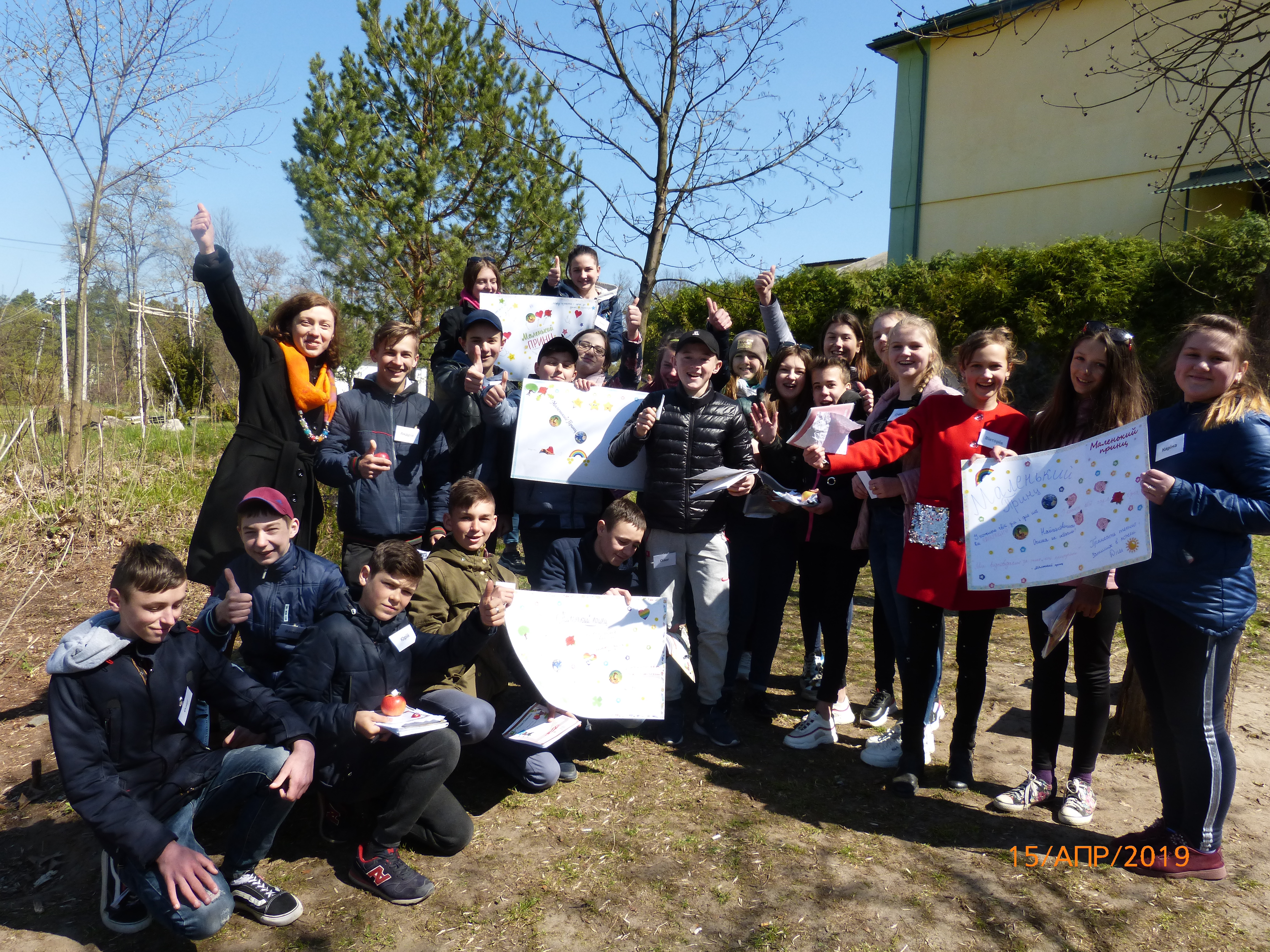Мені сподобалось, що восьмикласники поводились природно, невимушено: хтось сидів на траві, хтось обрав камінь, писали на спинах однокласників, на корі дерева. Розслабились. Відчувалось умиротворення, споглядальна насичена тиша і радість відчуття простих дрібничок, які становлять повноту життя.