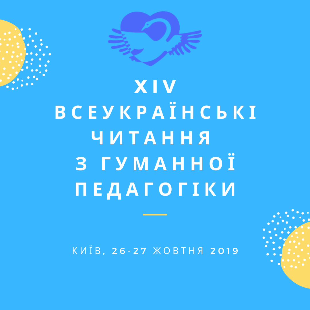 26-27 жовтня 2019 року за сприяння Міністерства освіти і науки України на базі Національного педагогічного університету імені М.П. Драгоманова відбудуться Чотирнадцяті Всеукраїнські Читання з Гуманної Педагогіки