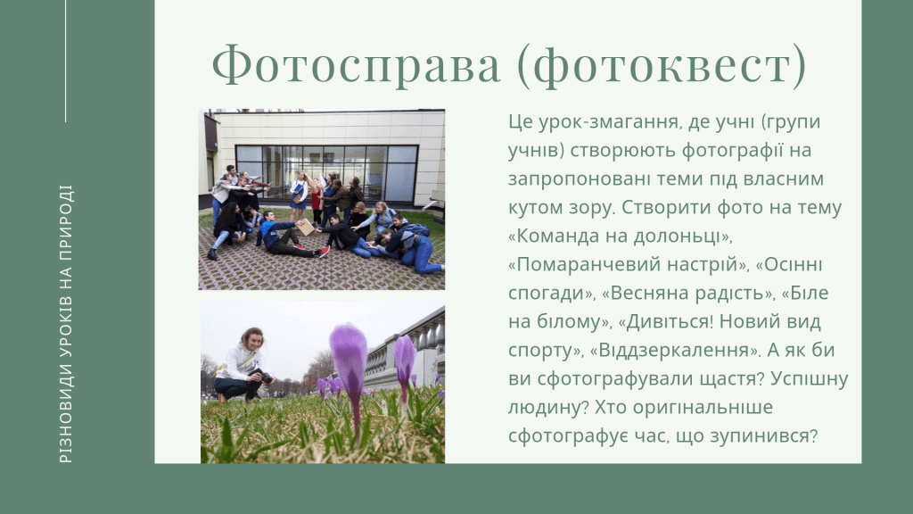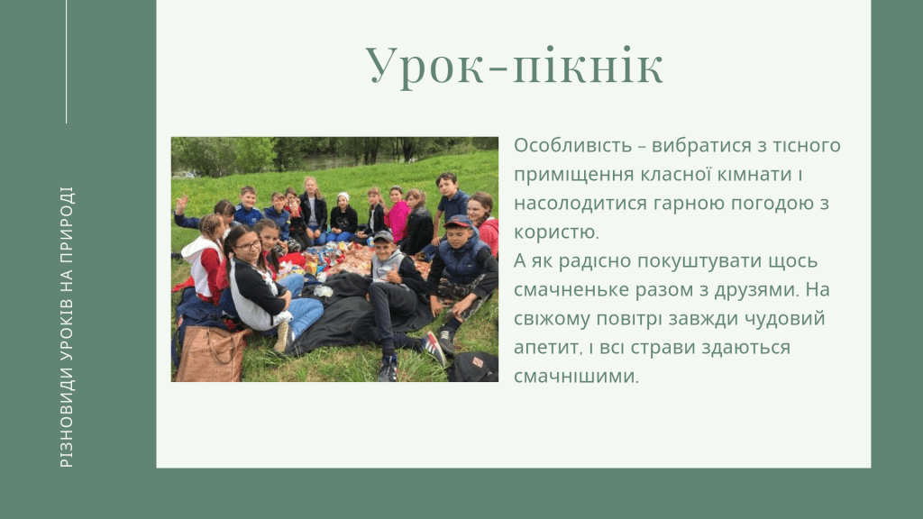 Сьогодні розкажу про різновиди уроків на природі.