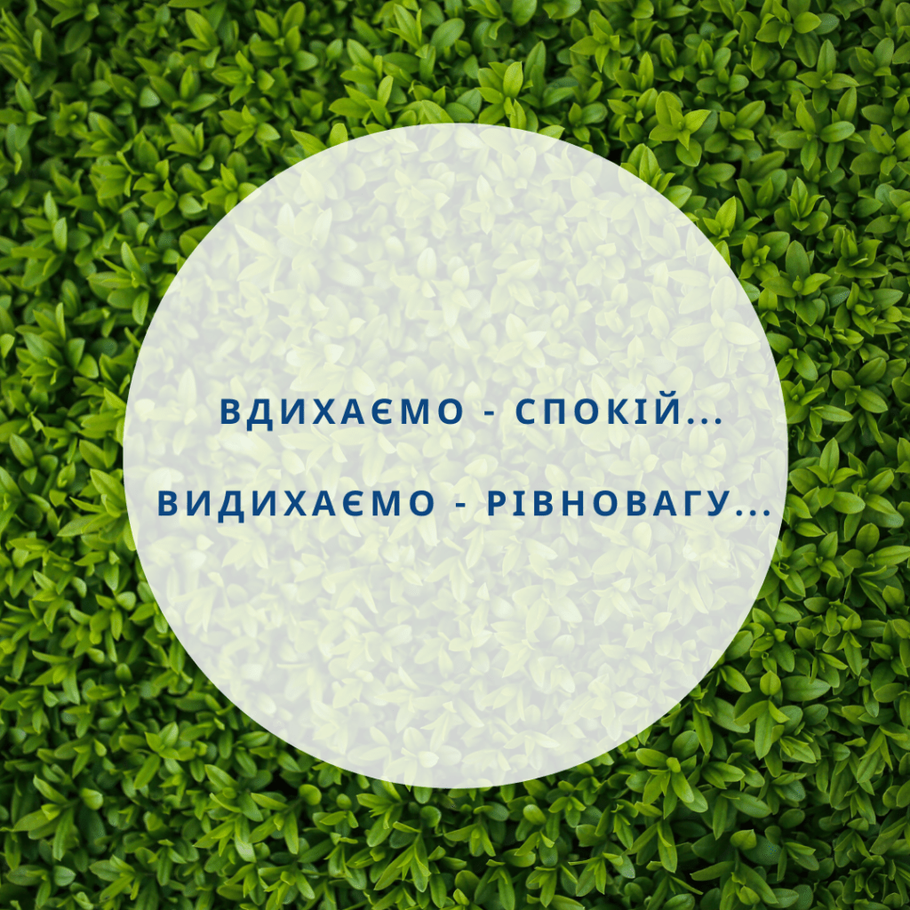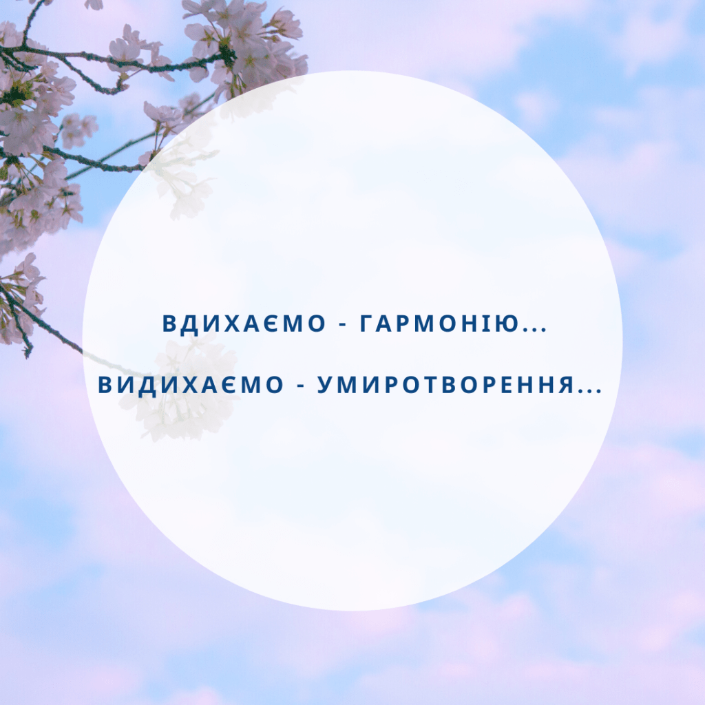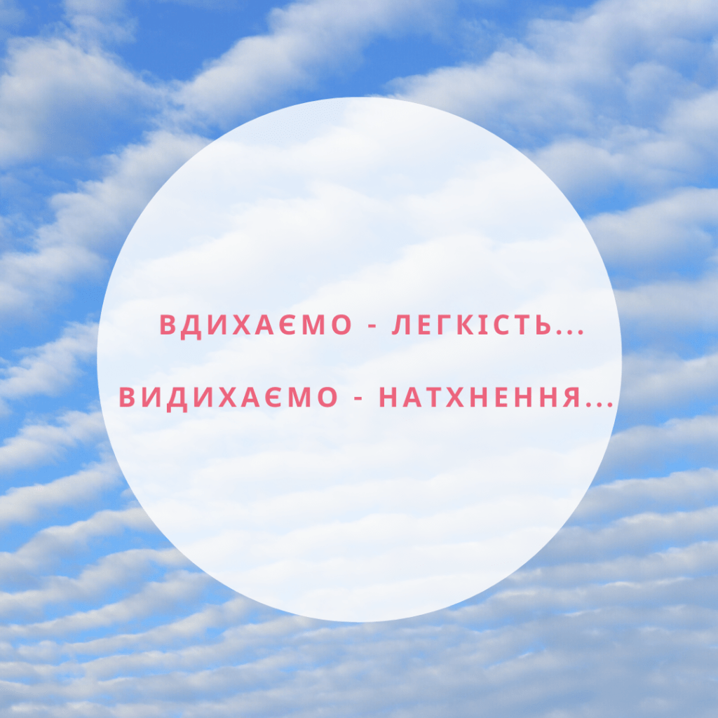 Сідаємо зручно, розслаблюємося і заплющуємо очі. Зосереджуємося на своєму диханні: на вдиху і на видиху.