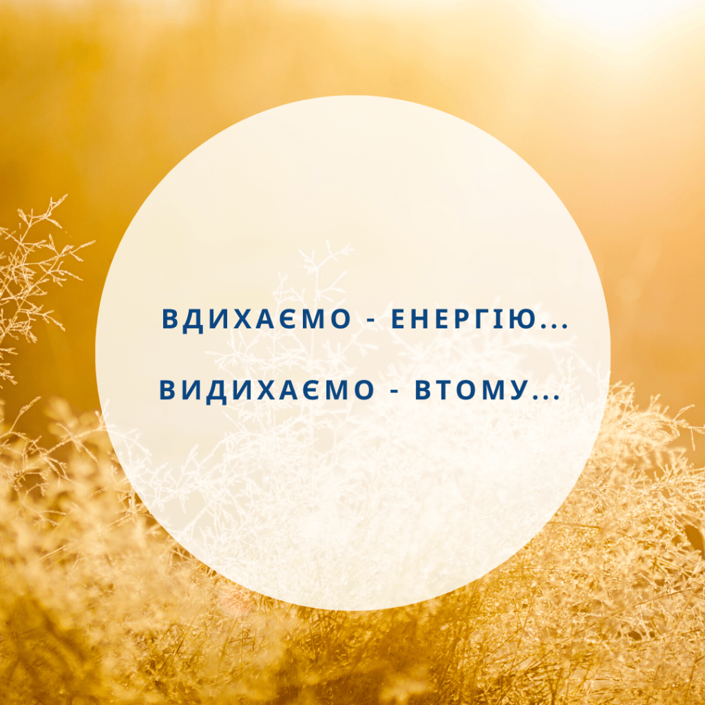 Будемо пам’ятати, що кожен вдих – це маленький акт зарядки енергією, а кожен видих – маленький акт вивільнення енергії.