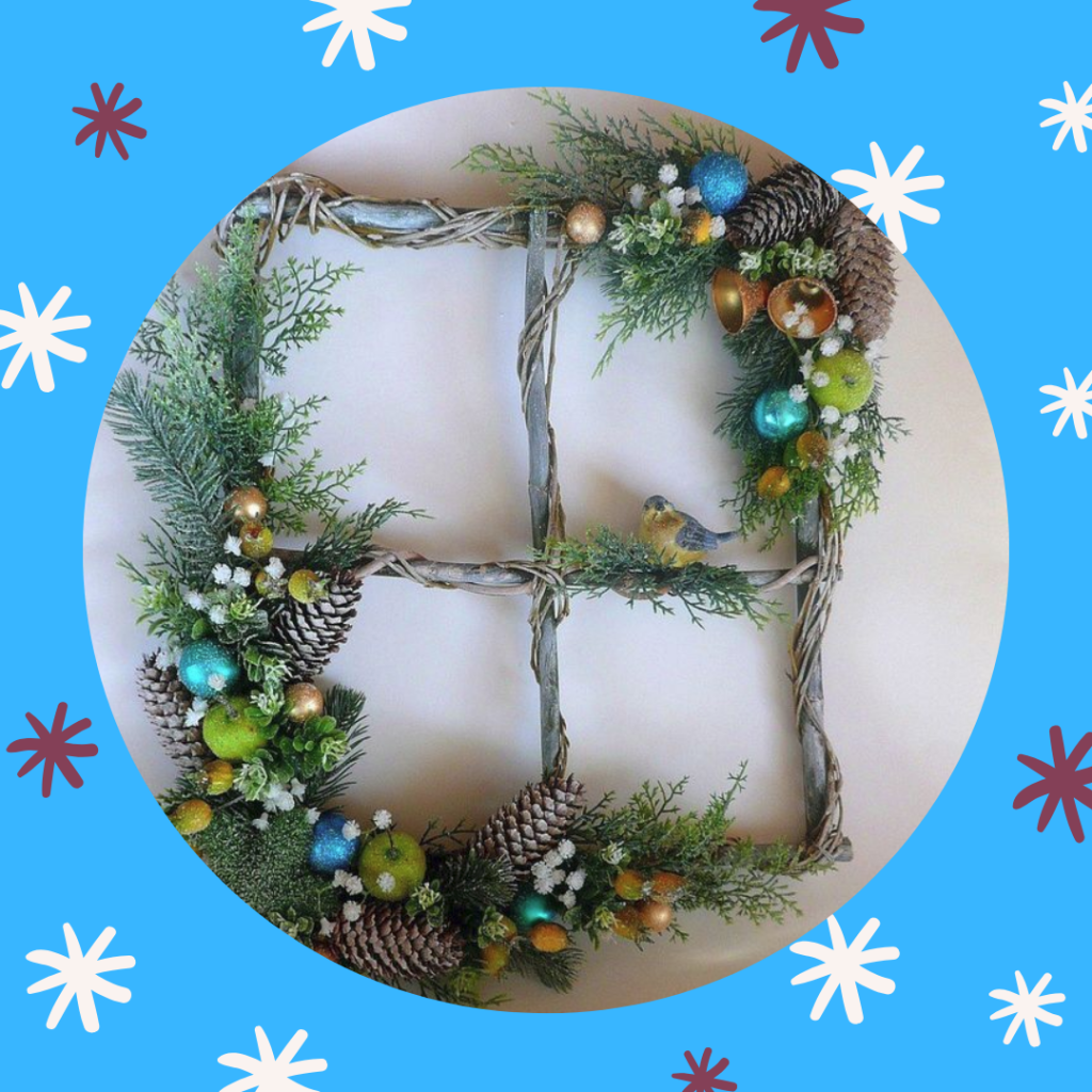 Різдвяний вінок на двері класної кімнатиможна зробити з ялинових лапок і дроту, акуратно пов’язаних між собою в коло, прикрасити шишками, мішурою і невеликими ялинковими іграшками.