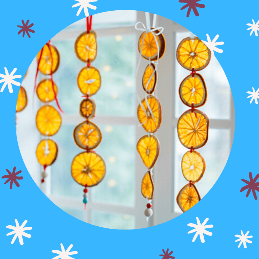 Оригінальні гірлянди з ялинових гілок, висушених часточок апельсина, шишок і сухофруктів – відмінне рішення для новорічної прикраси кабінету.