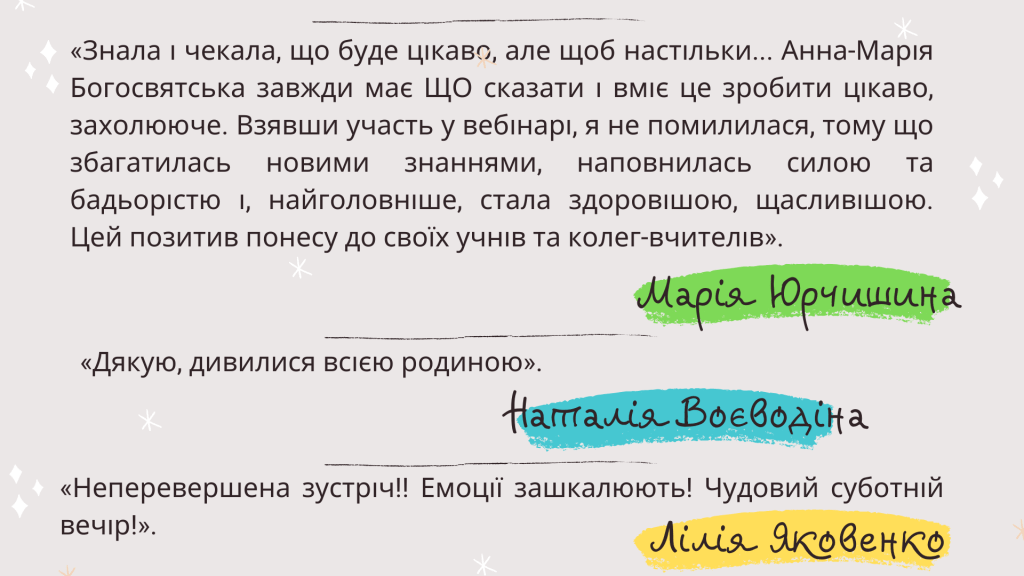 Що говорять ті, хто дивився вебінари Анни-Марії Богосвятської: