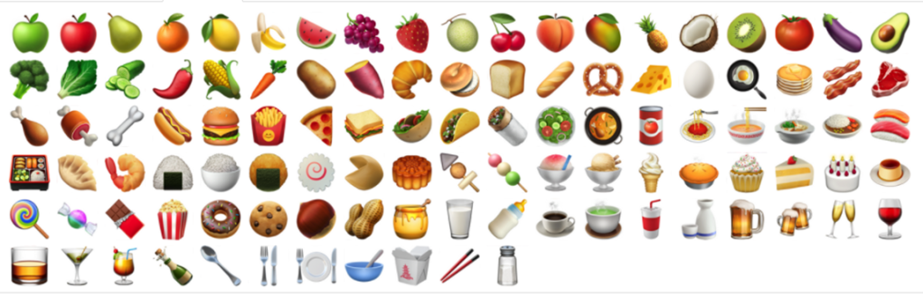 3) емодзі, що відображають їжу: