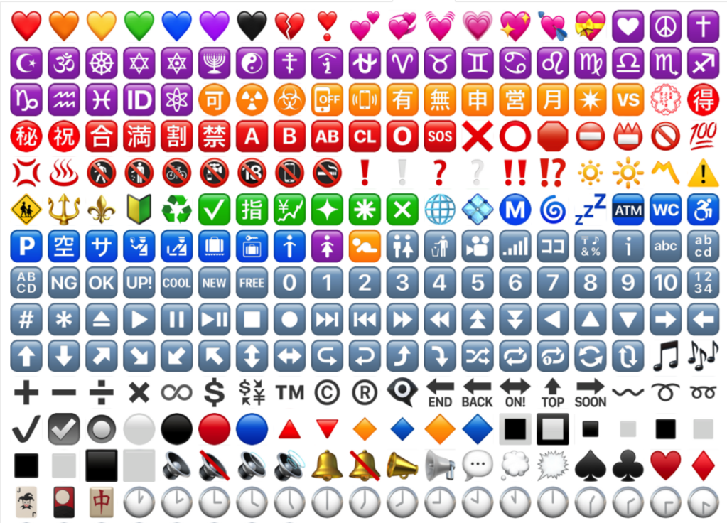 Емодзі розрізняються за призначенням і тематично.