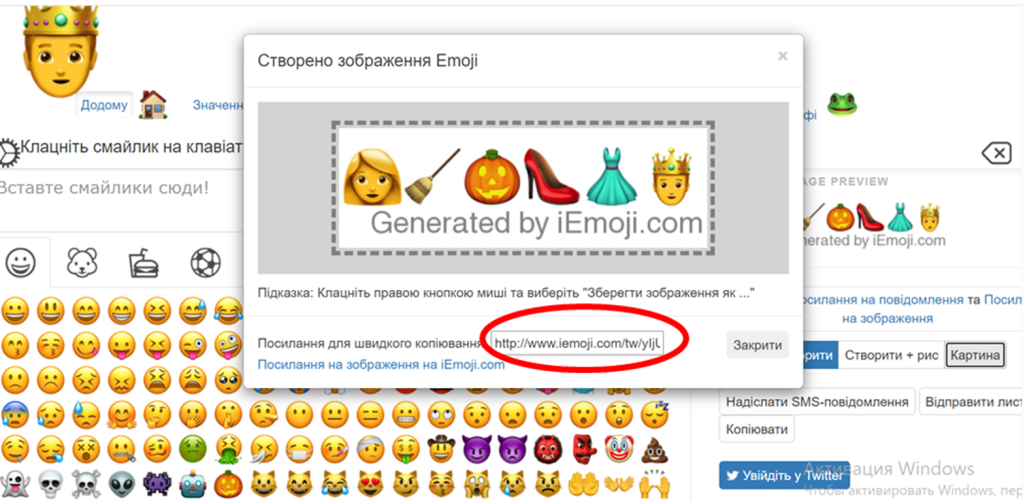 З’являється сгенерована емодзі-історія, яку я вже можу скопіювати або зберегти на своєму комп’ютері, натискаючи на неї правою клавішею миші.