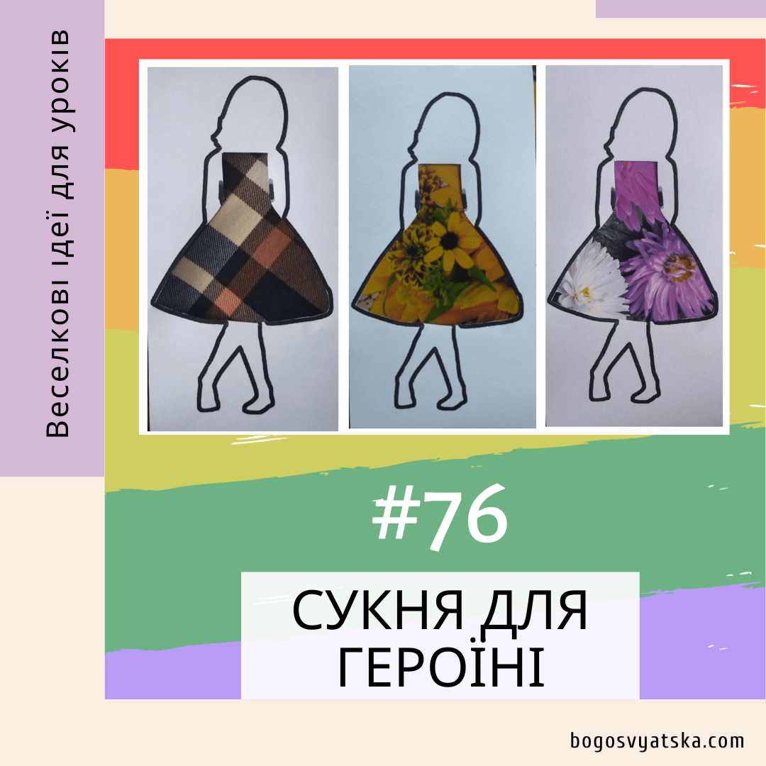 Сьогодні для рубрики “Веселкові ідеї для уроків” приготувала креативний прийом “Сукня для героїні”.