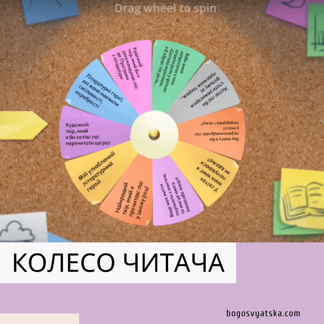 Пропоную вам інтерактивну вправу «Колесо читача», яку я створила на ресурсі WardWall.