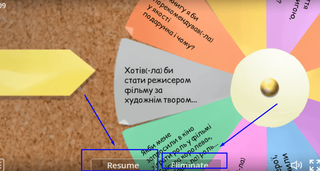 Кнопка «Resume» – і ви повертаєтесь у режим, де можна знову крутити колесо, аби інший учень відповів на своє запитання.