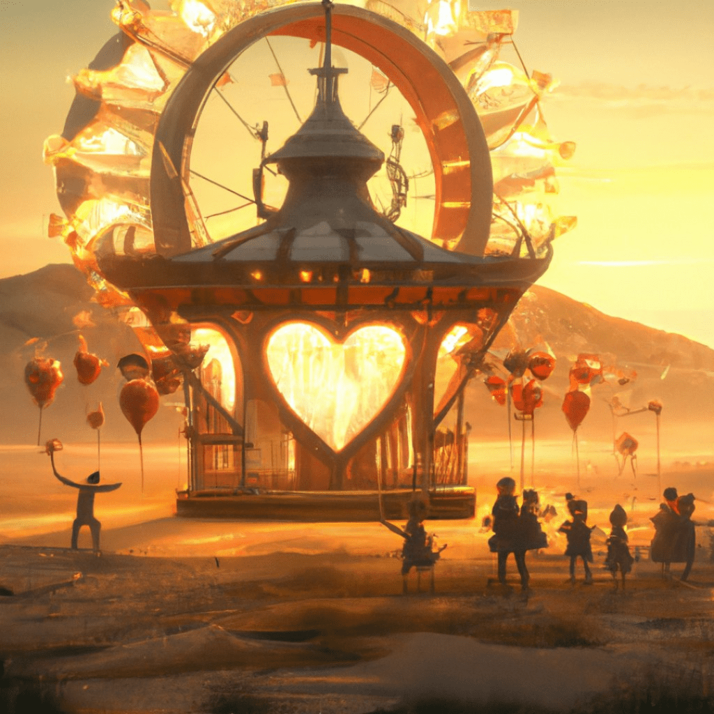 А це – притча з ілюстраціями, створена за допомогою штучного інтелекту “Райдужна дівчина і золота карусель вражень“