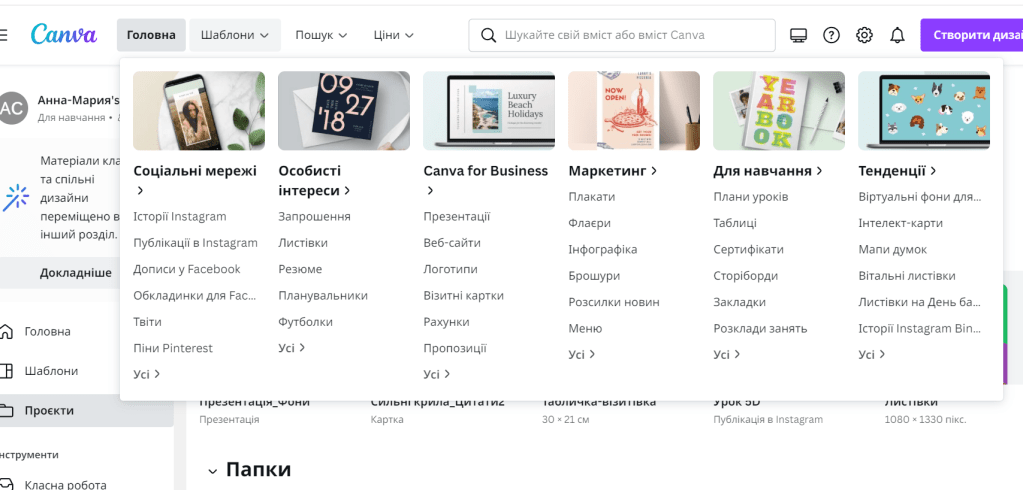 Це мій улюблений ресурс для створення дизайнів. Оформлення каналу «Сильні крила», оформлення мого сайту «Натхненник», всі обкладинки до моїх книг, всі мої авторські матеріали – це завдяки Canva.