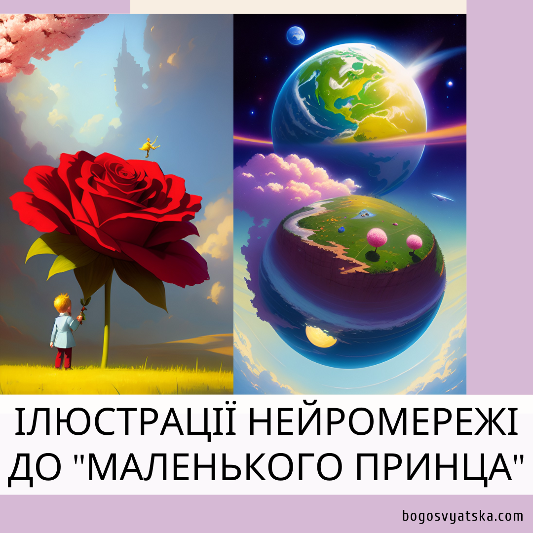 Пригадаємо основні символи твору і проілюструємо казку Екзюпері новими зображеннями, створеними за допомогою нейромереж. Завдяки цим інноваційним програмам нині кожен учитель і кожен учень може бути ілюстратором творів у будь-якому художньому стилі. Достатньо лише у спеціальні ресурси ввести текстову підказку – і штучний інтелект малює за вашим запитом картинку. Це неймовірно захопливо і цікаво!
