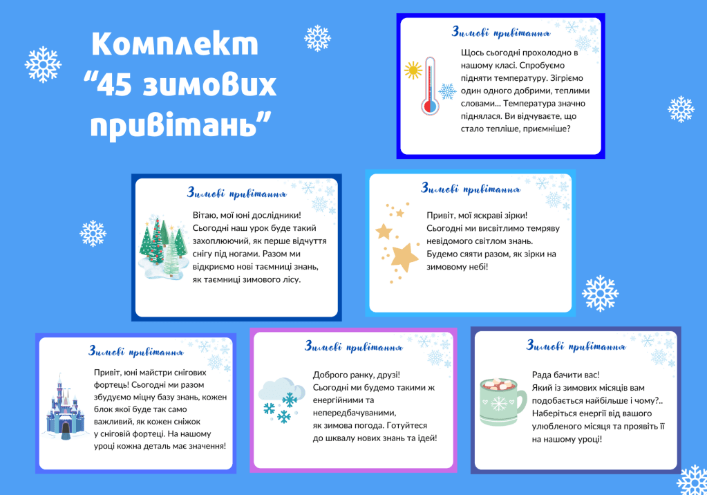 Ці привітання створять атмосферу свята та радості, використовуючи різноманітні зимові образи, які надихають та стимулюють уяву дітей.