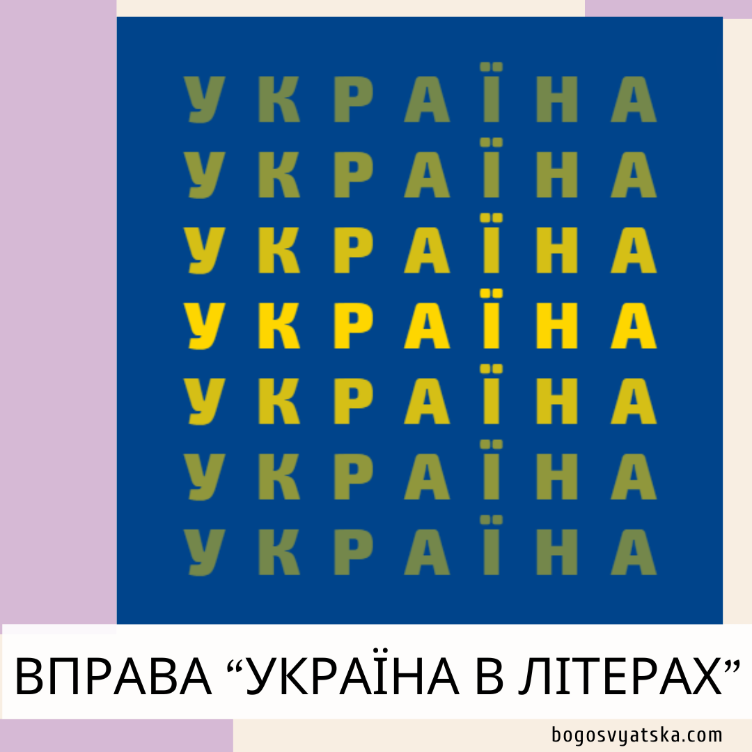 Учні в групах, парах або самостійно добирають на кожну літеру слова, пов’язані з Україною – її славою, унікальністю, традиціями, національним колоритом.