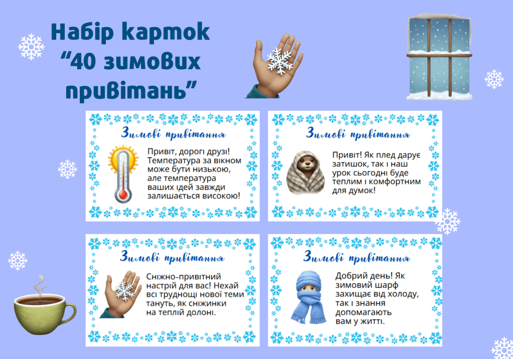 🎄5. Картки “40 зимових привітань”, ел. матеріал (1 – 11 класи)