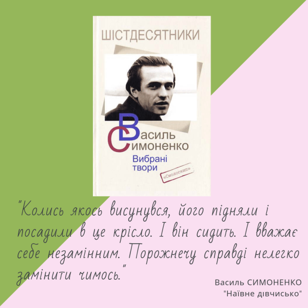Книгу з новелами Василя Симоненка мені дала колега на роботі. Звіряємо з нею наші смаки в читанні. До цього знала В. Симоненка тільки як поета. Новели дуже короткі: по півтори-три сторінки. Кожне слово на місці. Прості і зворушливі водночас сюжети, несподівані розв’язки. Усе за законами жанру. Живі картинки. От тільки присмак часу, що вже минув.... Continue Reading →
