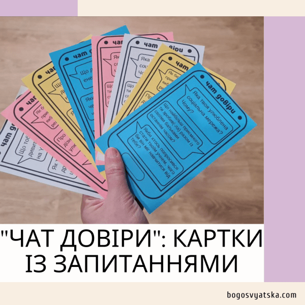Хочу запропонувати вправу-криголам для учнів 7-11 класів. Це електронний продукт, 40 оригінальних карток у форматі pdf, готових до друку, кожна з яких містить по 3 запитання про те, що хвилює сучасного підлітка: відносини з собою, світом, друзями, дорослими, а також цікаві філософські та життєві запитання на згуртування дітей, розвиток уяви, фантазії, критичного мислення, навичок взаємодії,... Continue Reading →