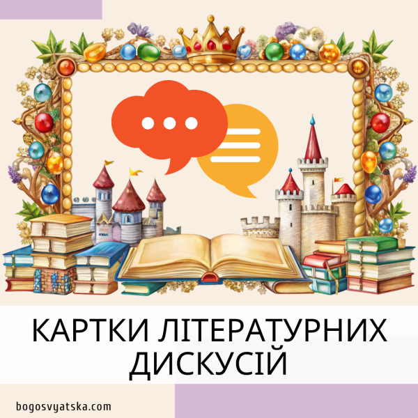 Головний спосіб навчити дитину читанню – це розмова, дискусія. До нового навчального року розробила універсальні картки для організації дискусій за будь-якою книгою. У комплекті 72 картки (запитання), які підходять для обговорення та аналізу будь-якого літературного твору. За допомогою пропонованих карток учні зможуть ділитися важливою інформацією про прочитані твори зі своїми однокласниками. Набір містить 3 групи... Continue Reading →